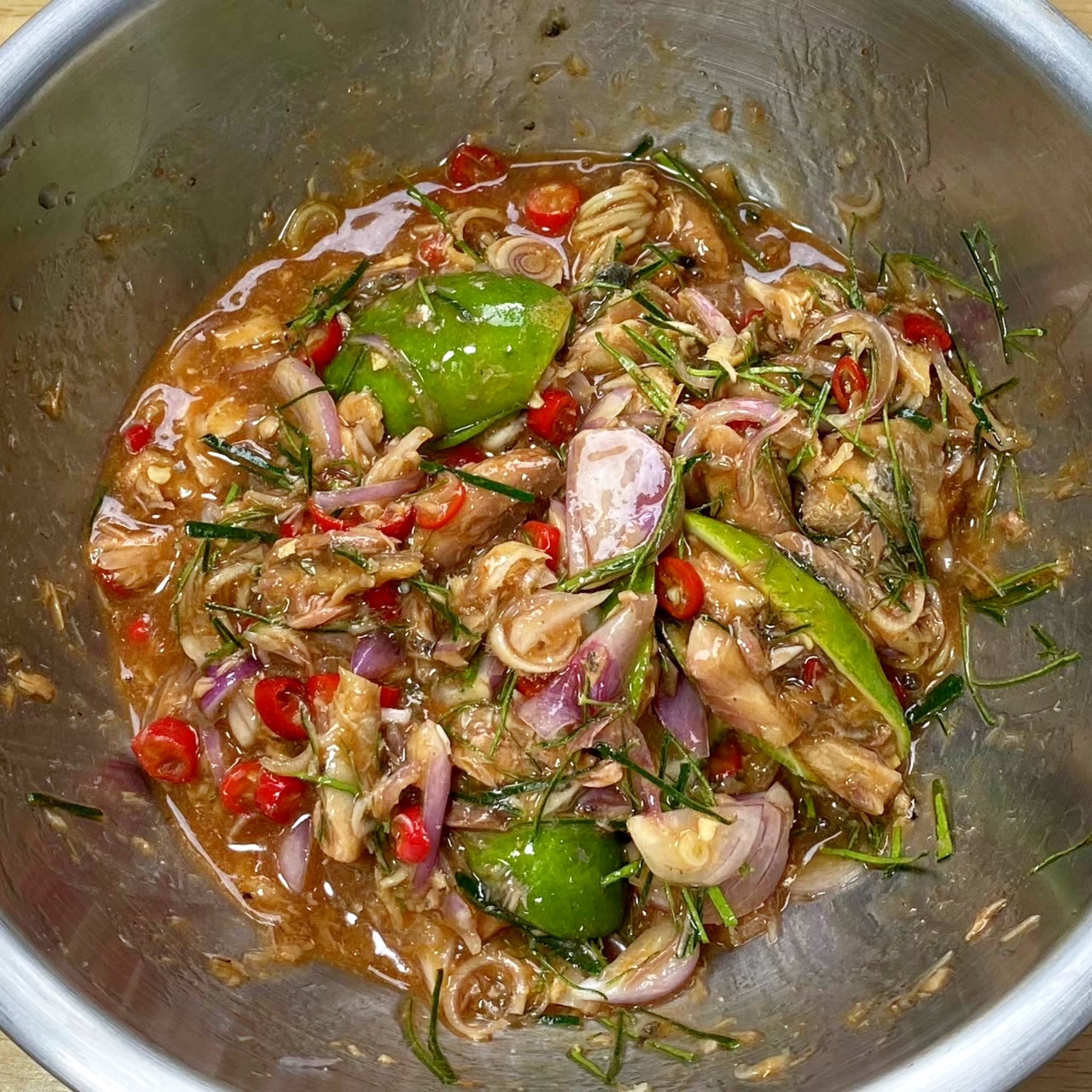 เเละใบมะกรูดซอย คลุกเคล้าให้เข้ากันอีกครั้ง