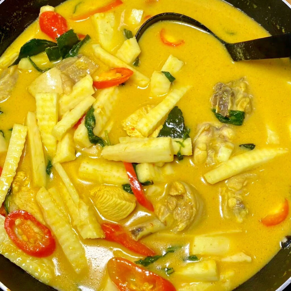 เเกงเผ็ดไก่ยอดมะพร้าว
