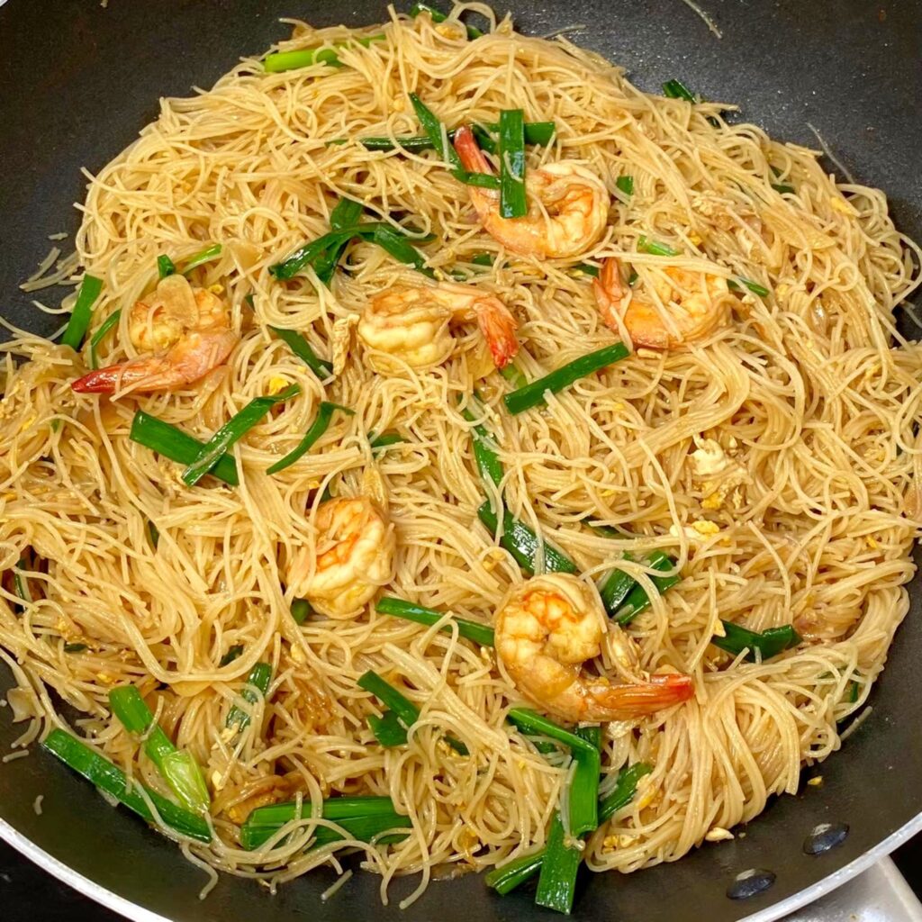 เคี่ยวให้เดือด ใส่เส้นหมี่ ผัดให้เส้นนิ่ม