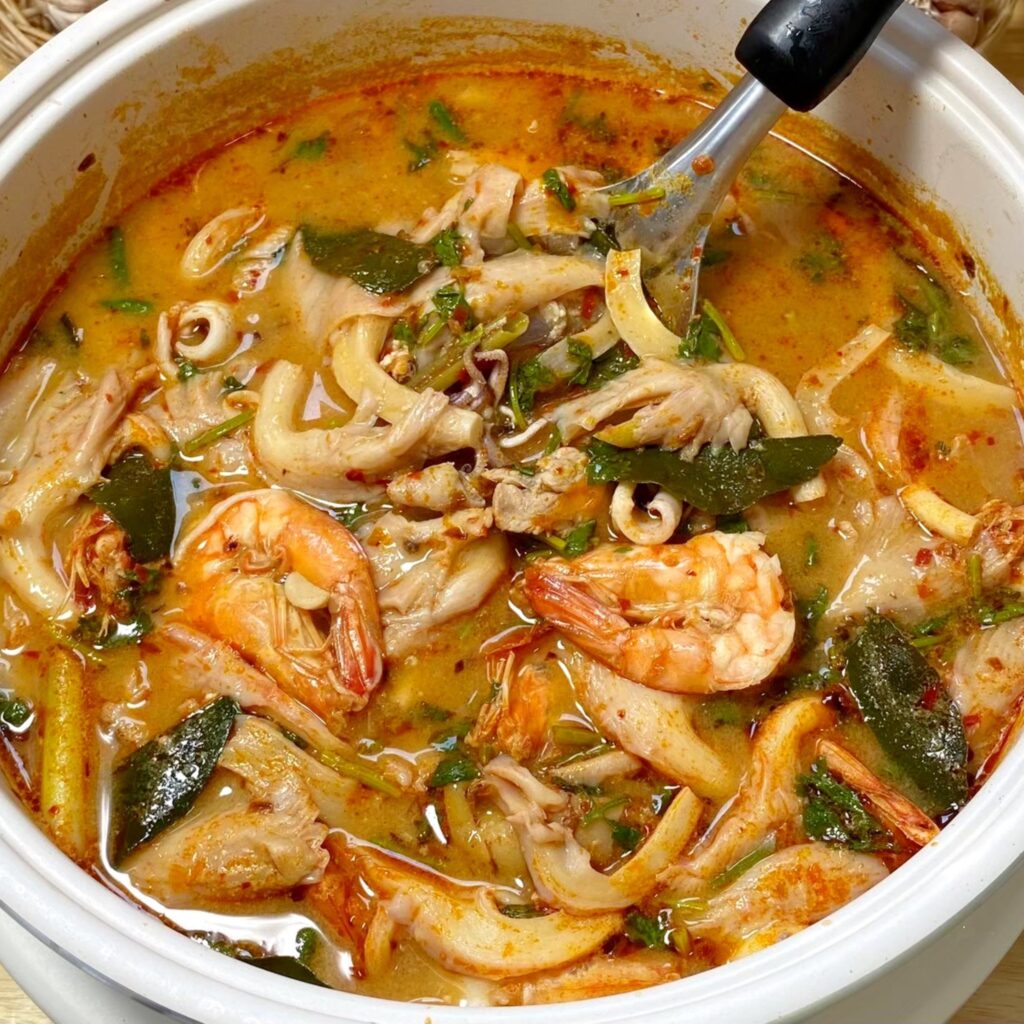 ตามด้วยเห็ดนางฟ้าฉีก ต้มต่อ ใส่กุ้งสดลงไป