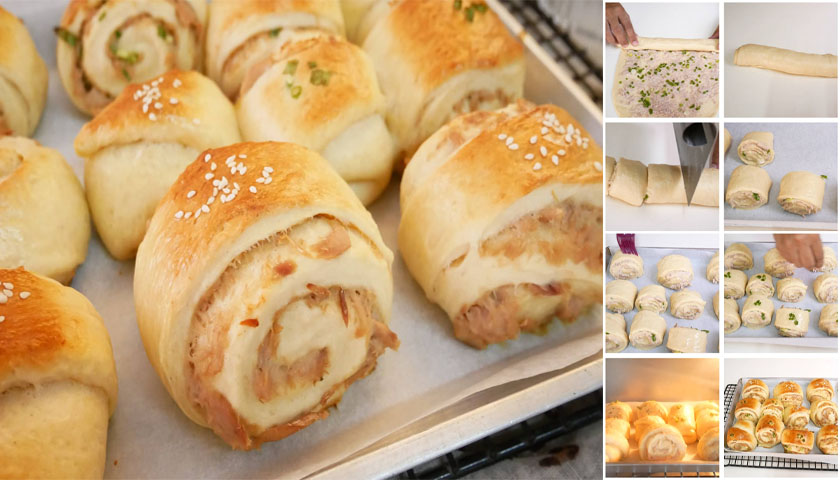 วิธีทำ ขนมปังทูน่ามายองเนส สูตรนวดมือ 5 นาที ทำง่าย ใช้เวลานาน