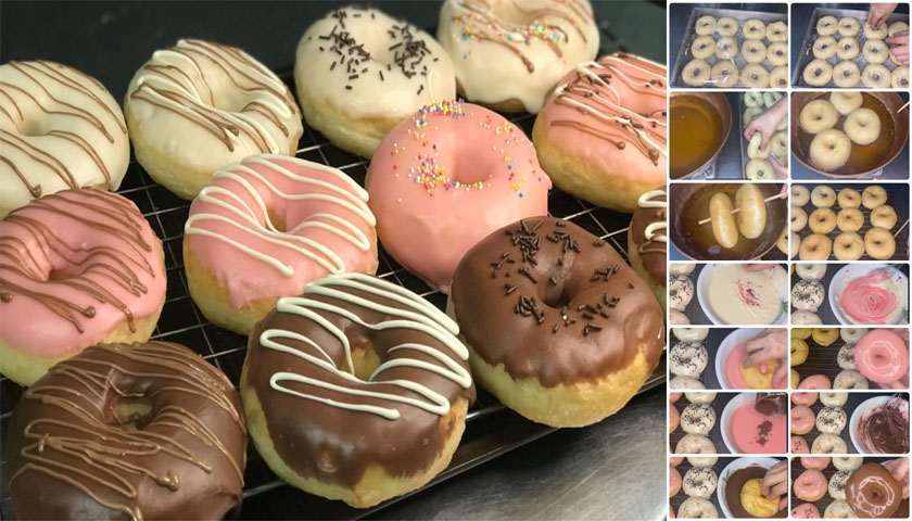 12 นำโดนัทลงไปชุบ และตกแต่งหน้าโดนัท
