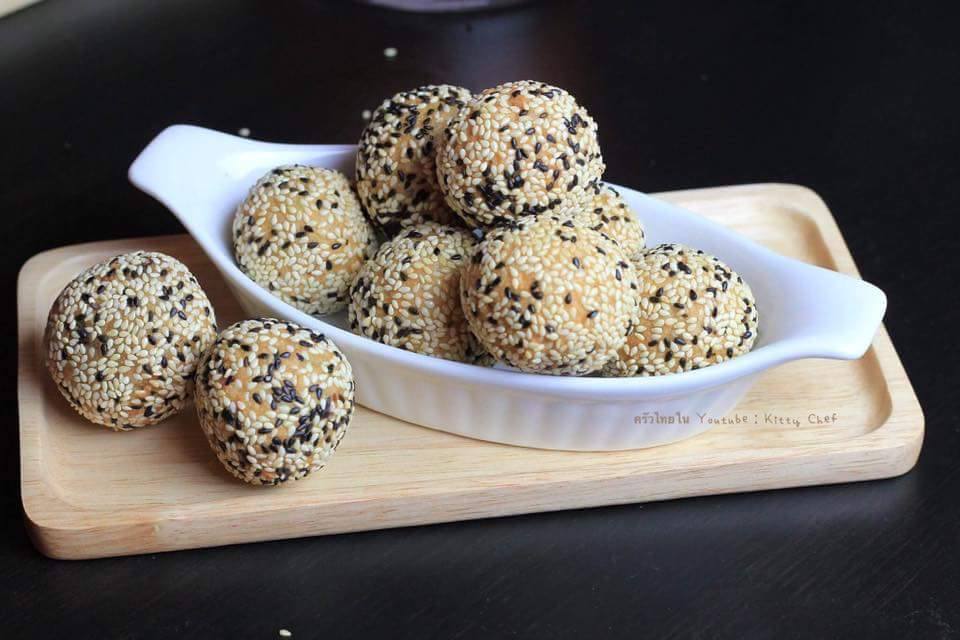 วิธีทำ ขนมงาทอดไส้ถั่วเเดง เเป้งกรอกนอกนุ่มใน อร่อย ทานเพลินๆ