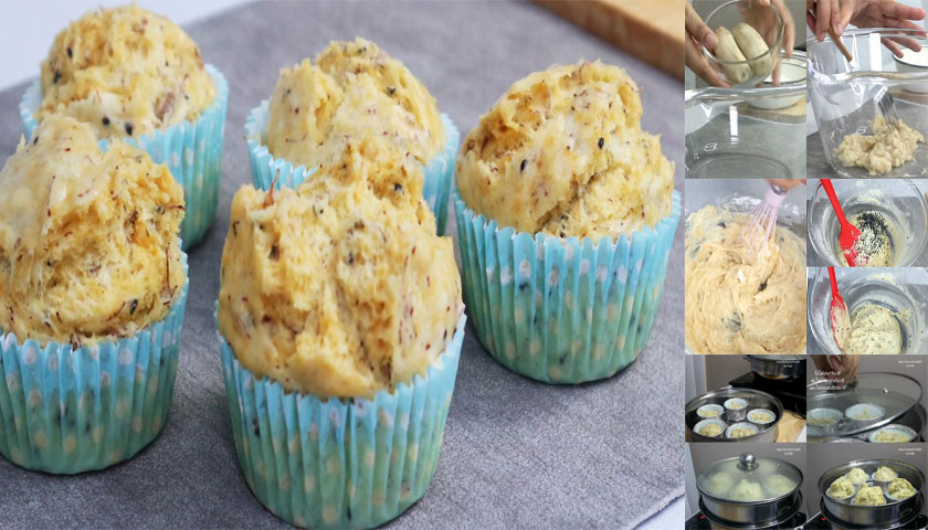 มัพฟิ่นกล้วยน้ำว้า เนื้อนุ่ม หอมอร่อย สูตรนึ่ง ทำง่ายไม่ใช้เครื่องตี