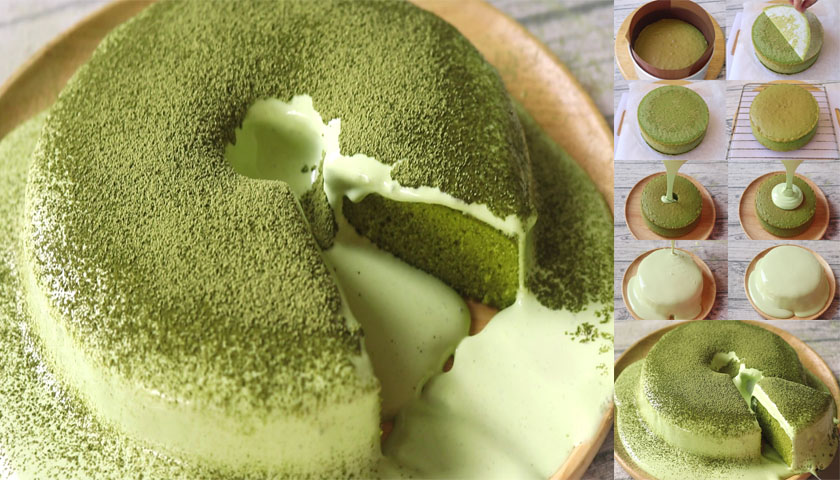 สูตรวิธีทำ เค้กชาเขียวลาวา เค้กเนื้อสปันจ์ นุ่มอร่อย ไส้ครีมลาวา เยิ้มๆ