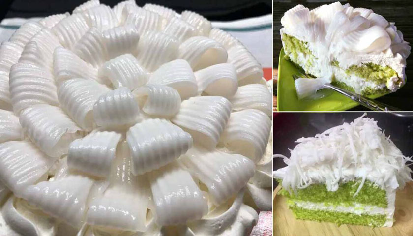 เเจกสูตรการทำ “เค้กใบเตยมะพร้าวอ่อน” สูตรเเป้งนุ่มละมุนลิ้น หอมอร่อย หวานมันกลมกล่อม