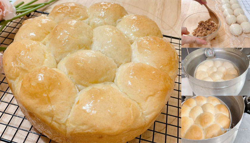 วิธีทำ ขนมปังหมูหยอง สูตรนวดมือ ไม่ใช้เตาอบ มือใหม่ก็ทำได้