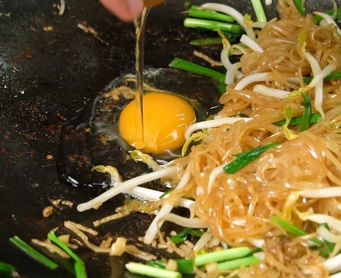 2 ปรุงรสด้วยน้ำปลา น้ำตาลทราย น้ำส้มสายชู เเละซีอิ๊วดำ ผัดให้เข้ากันเเละเเห้ง จากนั้นใส่กุยช่ายเเละถั่วงอกผัดด้วยไฟเเรงให้สุกกรอบ อย่ าผัดนานผักจะสุกเกินไปไม่อร่อยจ้า