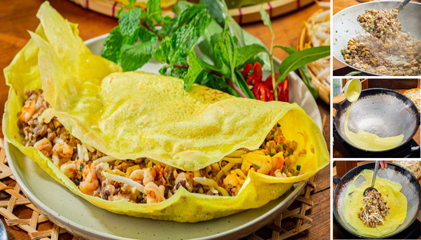 ขนมเบื้องญวน,สูตรขนมเบื้องญวน,สูตรขนมเบื้องญวนเเป้งบางกรอบ,Vietnamese Savory Crepe