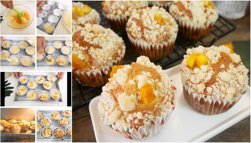 มัฟฟินมะม่วงครัมเบิ้ล สูตรนี้หวานกำลังดี ทำง่ายๆเเค่คนให้เข้ากัน