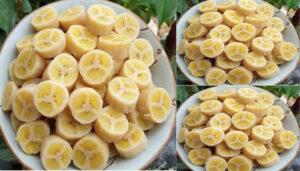 7.เอากล้วยขึ้น หั่นตามใจชอบ ทานได้เเล้วจ้า