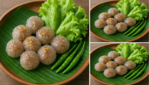 นึ่งด้วยน้ำเดือดประมาณ 7–10 นาที จนเม็ดสาคูใส