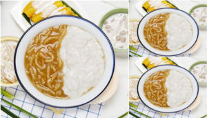 น้ำกะทิควรทำรสหวานมันเค็มนิด ๆ จะตัดกับตัวแป้งพอดี