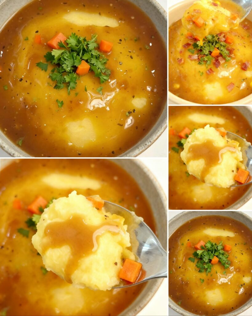 – ใช้มันฝรั่งพันธุ์เเป้งเยอะ (เช่น Russet หรือ Yukon Gold) จะเนียนอร่อยกว่า