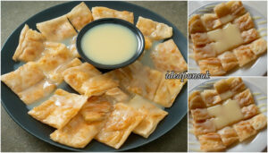 8. นำแป้งโรตีที่ทอด มาโรยด้วยนมข้นหวาน น้ำตาล แล้วตัดเป็นแผ่น หรือห่อกระดาษ ก็แล้วแต่สะดวกครับ เท่านี้ก็พร้อมรับประทานแล้ว