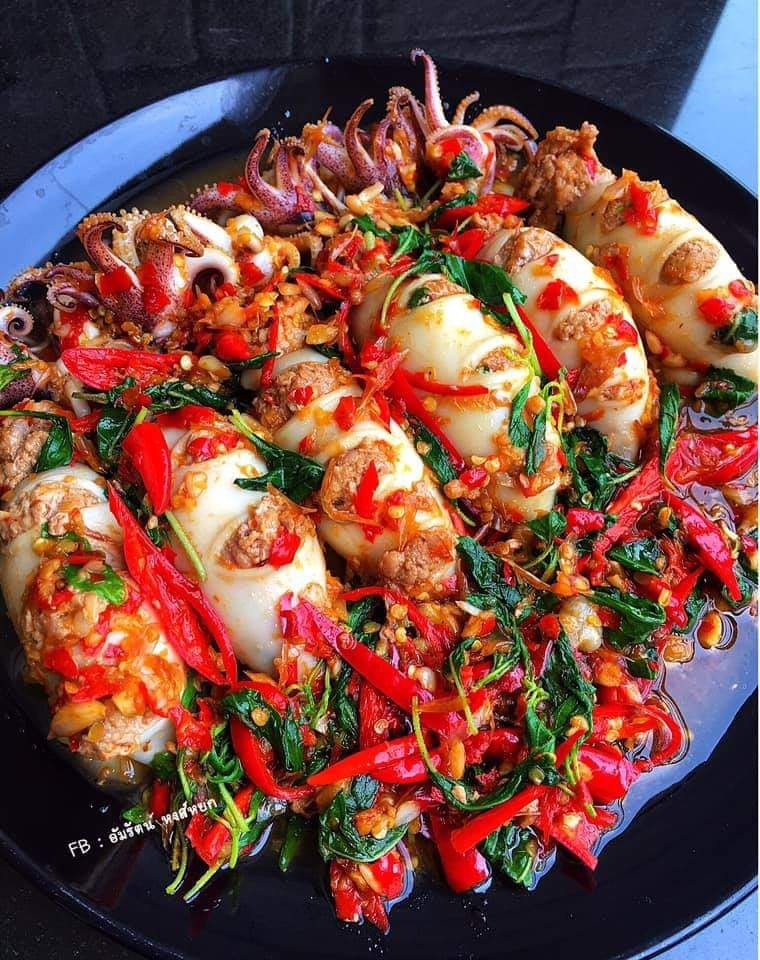เเจกสูตรวิธีทำ ผัดกะเพราปลาหมึกยัดไส้จร้า