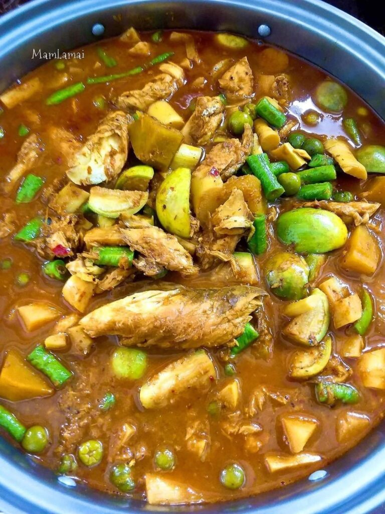 6.รอจนเดือดดีใส่ผัก มะเขือเปราะ มะเขือพวง หน่อไม้ต้มหั่น