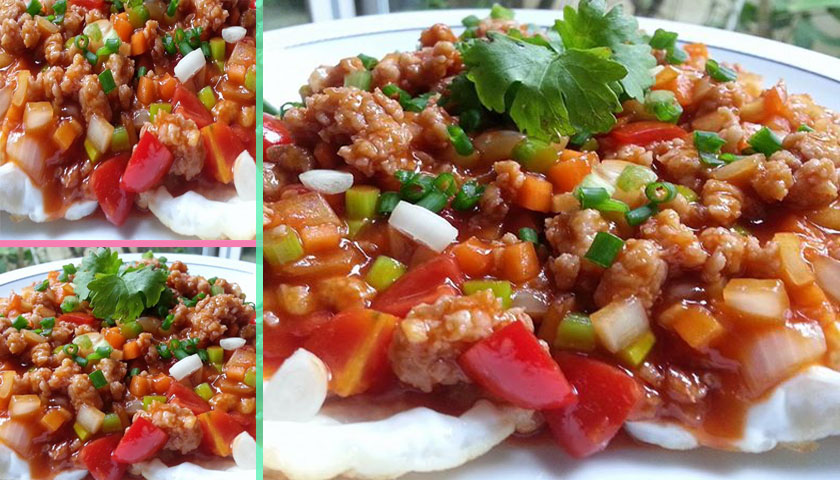 ตักราดบนไข่ดาวโรยหน้าด้วย ต้นหอมเเละผักชีได้เลยค่าา