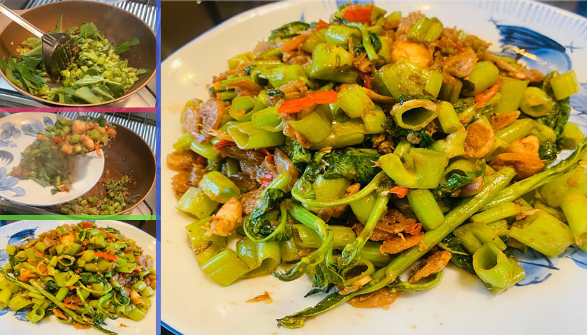 เเบ่งปันสูตร ผักบุ้งผัดกะปิ ทำง่าย รสจัดจ้านหอมอร่อยเข้มข้น