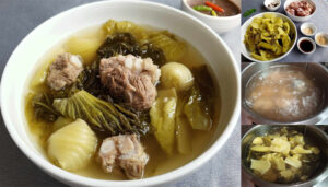 ใส่ผักกาดดองลงไป แล้วต้มด้วยไฟกลางค่อนอ่อน ต้มไปจนกว่าหมูจะเริ่มนิ่มเปื่อย (จะได้กินง่ายขึ้น)