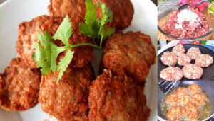 ใส่แป้งทอด กรอบลงไป 2 ชต ทำให้ หมูทอด กรอบนอกนุ่มในทานอร่อย ปั้นเป็นก้อนง่าย