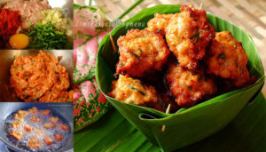 นำทุกอย่างผสมคลุกเคล้าให้เข้ากัน ปั้นแบบทอดมัน