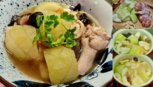 จากนั้นใส่ฟัก เห็ดหอม เห็ดหูหนูและฟองเต้าหู้ ต้มต่อจนฟักสุก