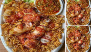 – ทิ้งไว้ให้เย็น ผสมแป้งทอดกรอบกับรสดี และกระเทียมพริกไทยในน้ำเย็นจัด