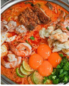 ขั้นตอนการทำมาม่าต้มยำทะเลหม้อไฟ
