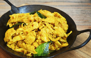 เมนูไก่ผัดพริกแกงใต้ ทีเด็ดคือใส่พริกแกงใต้สีสวยลงไปผัดกับเนื้อไก่ เพิ่มความหอมจากใบมะกรูด
