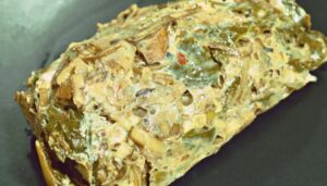 เสร็จแล้ว ตักใส่ใบตอง ห่อให้เรียบร้อย แล้วนำไปนึ่งด้วยไฟแรง เป็นเวลา 30 นาที เป็นอันเสร็จ