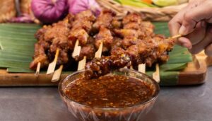 คลุกเคล้าให้ส่วนผสมเข้ากัน หมักหมูไว้ประมาณ 20 นาที ก่อนนำไปย่าง