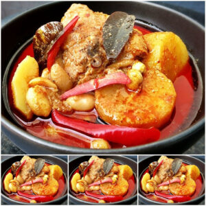 ใส่มันฝรั่ง, ถั่วลิสง, หอมใหญ่, อบเชย, ใบกระวาน, ลูกกระวาน เคี่ยวต่อให้เดือด จากนั้นปรุงรสด้วยน้ำตาลปี๊บ น้ำปลา