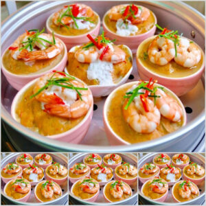8 นึ่งจนสุก ราดหน้าห่อหมกด้วยกระทิ