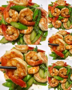 ผัดหน่อไม้ฝรั่งใส่กุ้ง