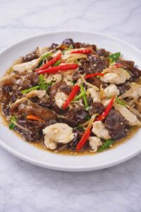 เห็ดหูหนูดำ (แช่น้ำ หั่นชิ้นพอดีคำ) 1/2 ถ้วย