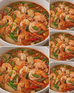 * ใส่กุ้งและเห็ด: พอน้ำเดือดอีกครั้ง ใส่กุ้งลงไป ไม่ต้องคน เพราะจะทำให้กุ้งคาว เมื่อกุ้งเริ่มเปลี่ยนสีเป็นสีส้ม แสดงว่าสุกแล้ว ใส่เห็ดตามลงไป ต้มจนเห็ดสุก