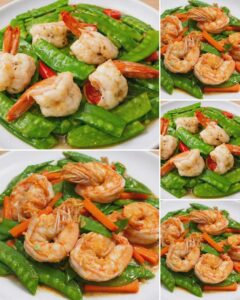 กุ้งผัดถั่วลันเตา กรอบสด หอมกระเทียม กุ้งเด้งน่ากิน