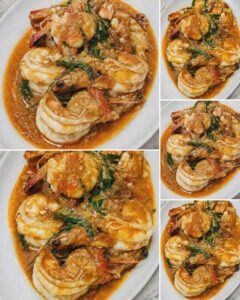 พร้อมเสิร์ฟ: ตักใส่จาน ราดน้ำซอสที่เหลือในกระทะลงบนตัวกุ้ง ทานคู่กับน้ำจิ้มซีฟู้ดรสเด็ด